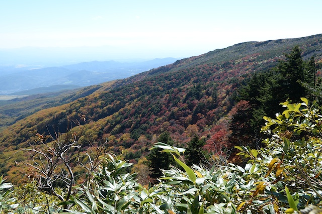 そして3日目は上天気。こちらは、福島市から浄土平に車で登る途中の紅葉。