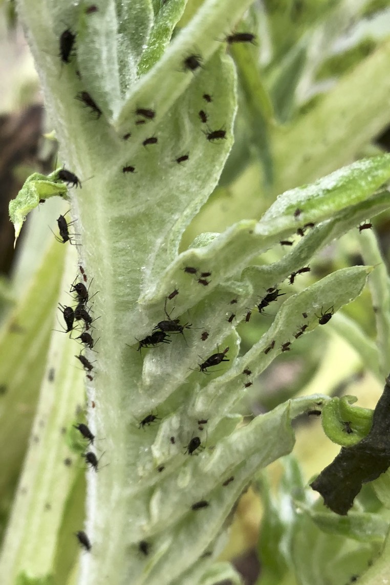 | アブラムシの姿が見えないうちに防虫ネットを掛けていたつもりだったが。。 |