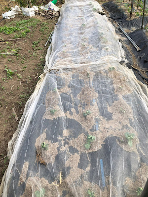 で、芽出しの悪いところに予備苗を移植した後も、もうしばらく鳥除けにネットを掛けておくことにした。
