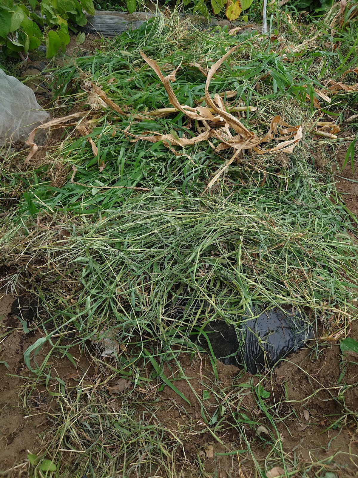 植えた後には乾燥予防に雑草マルチを掛けておいた。秋になってまずかわいい紫色の花を見せてくれるのを楽しみに待とう。