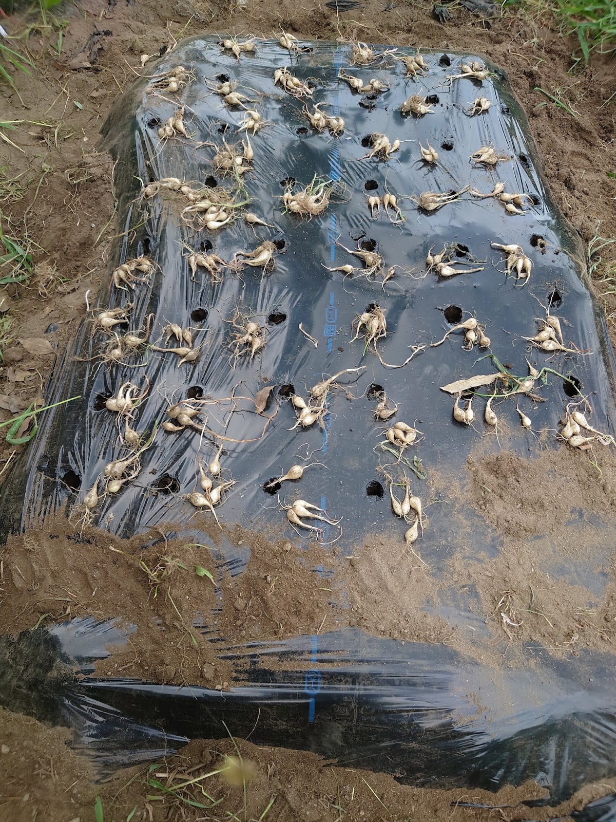さて、こちらは収穫せずに残しておいたラッキョウを掘り起こしたところ。