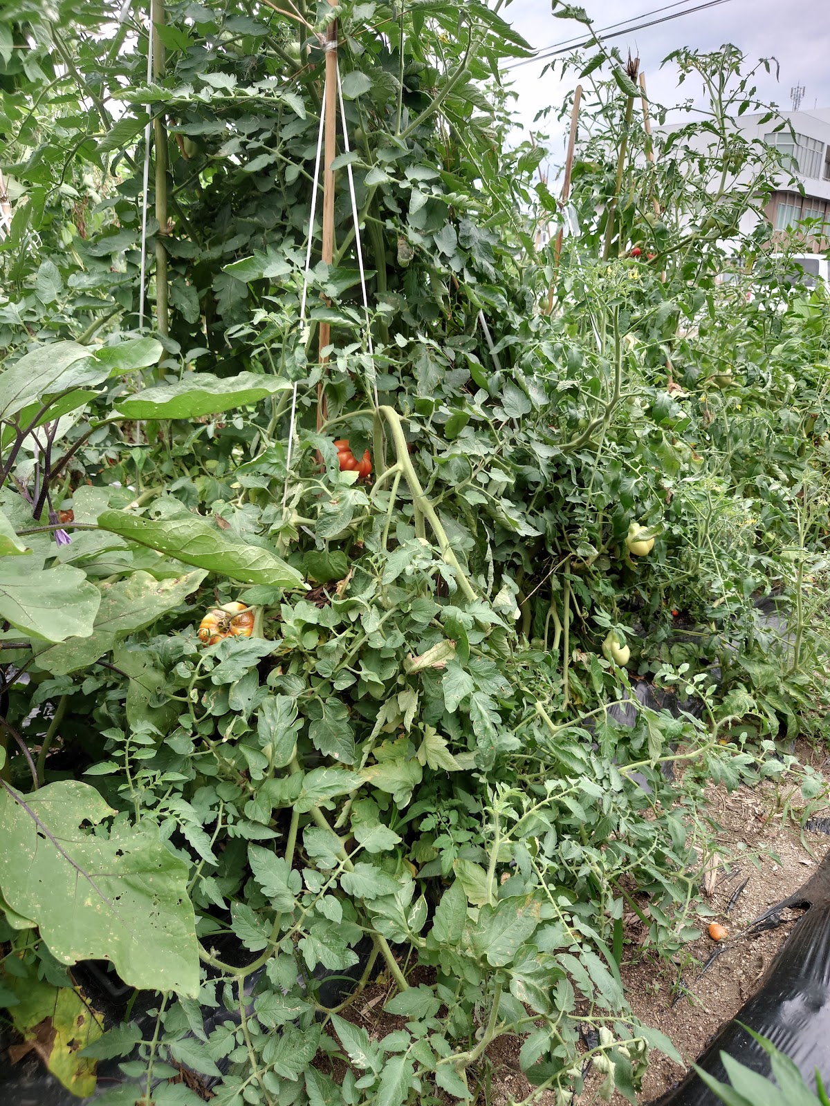 枯れた苗は先日引き抜いて、その場所にモロヘイヤや時間差で自然発生してきたトマトの苗を植えた。