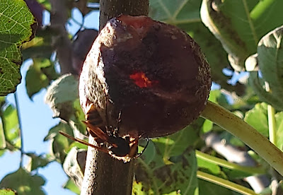 イチジクは、まだ食べれる実が次々に出来ているのだが、台風の後採り忘れた実にスズメバチがたくさん寄ってきているので、怖くて近づけなくなった。