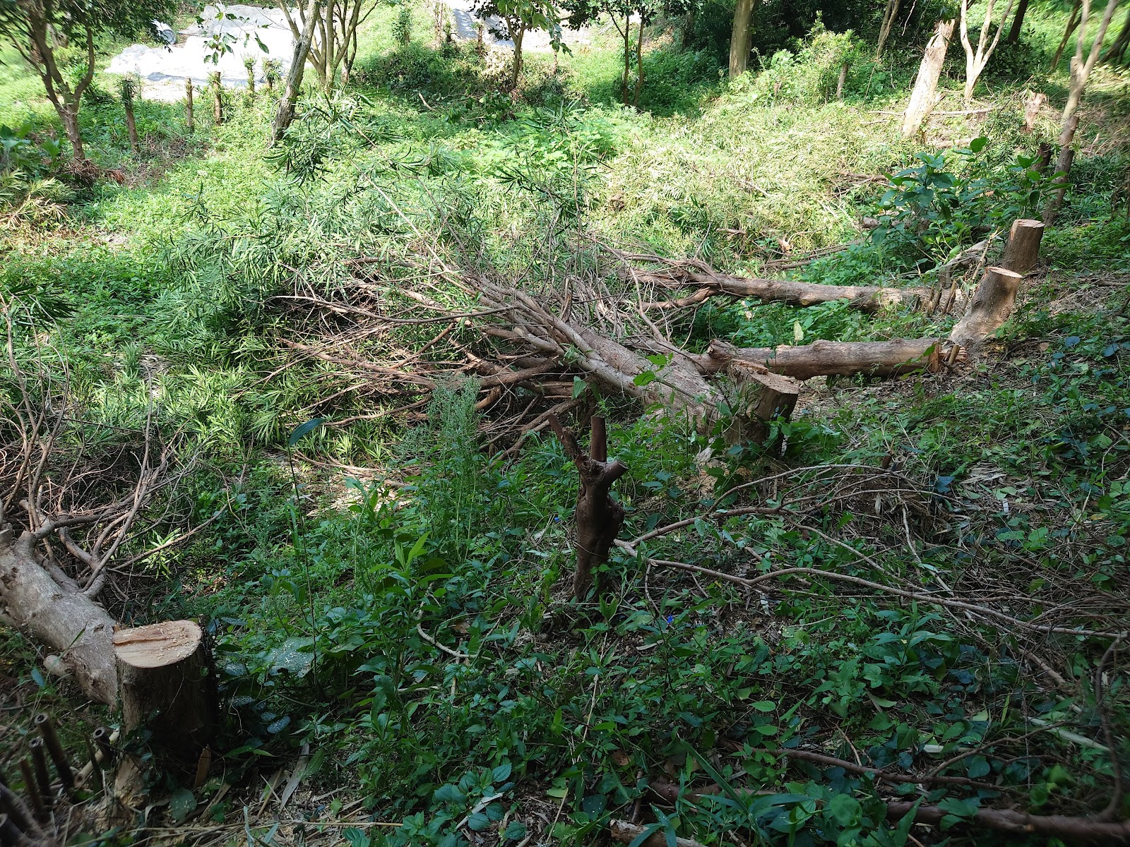 ネットを張ったところを段々畑側から見るとこんな感じ。