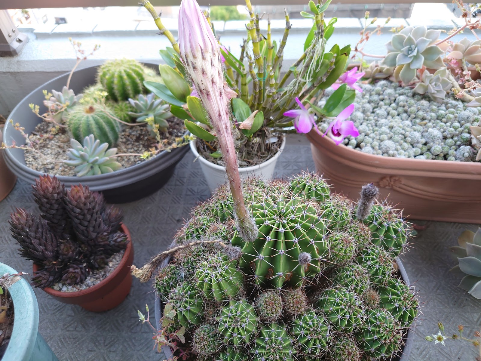 サボテンがまた大きな蕾を見せている。