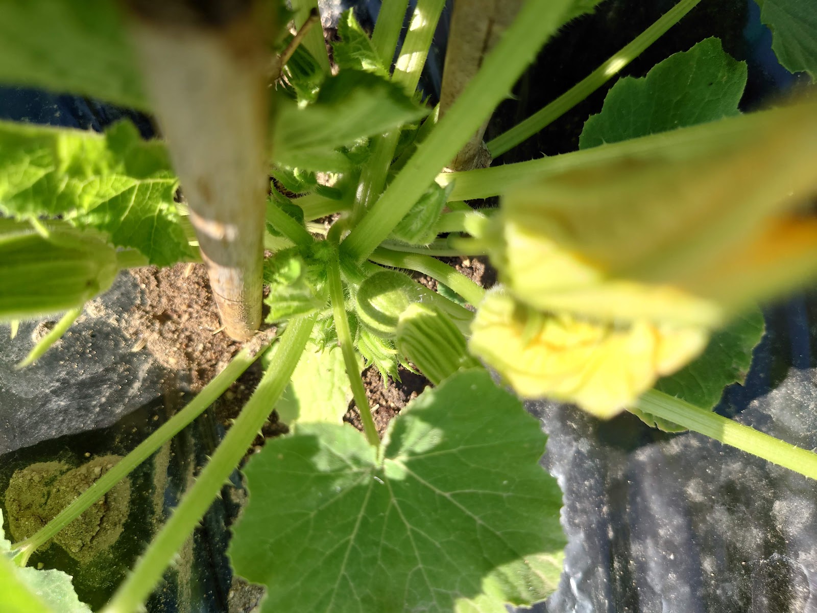 さて、ズッキーニの苗は不織布トンネルの中で順調に育っていた。