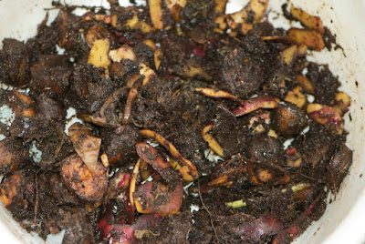 餌はほとんど減っていない。観察小屋の中に出来ている堆肥もごく僅か。 こんな状態ならミミズ君はやせ細っている? |