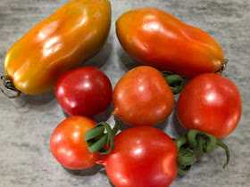 まだ収穫した時緑色のトマトもそのまま置いて色が変わったら料理に使っている。 |